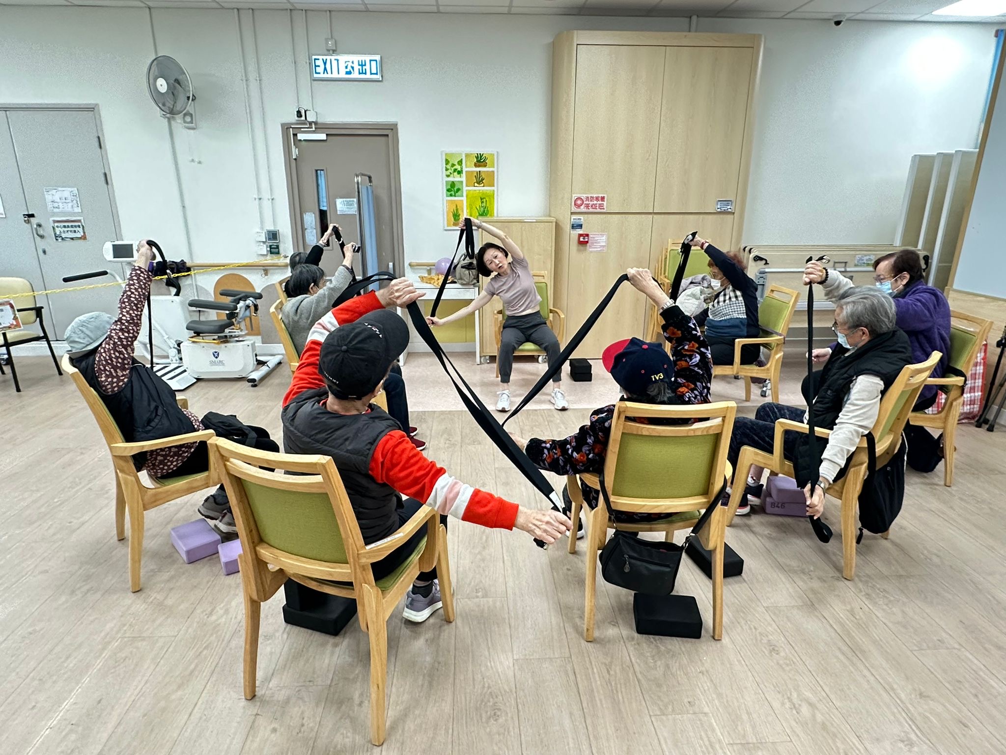 This is a positive-ageing yoga class open to beneficiaries of The Po Leung Kok Chu Lee Yuet Wah Day Care Centre.